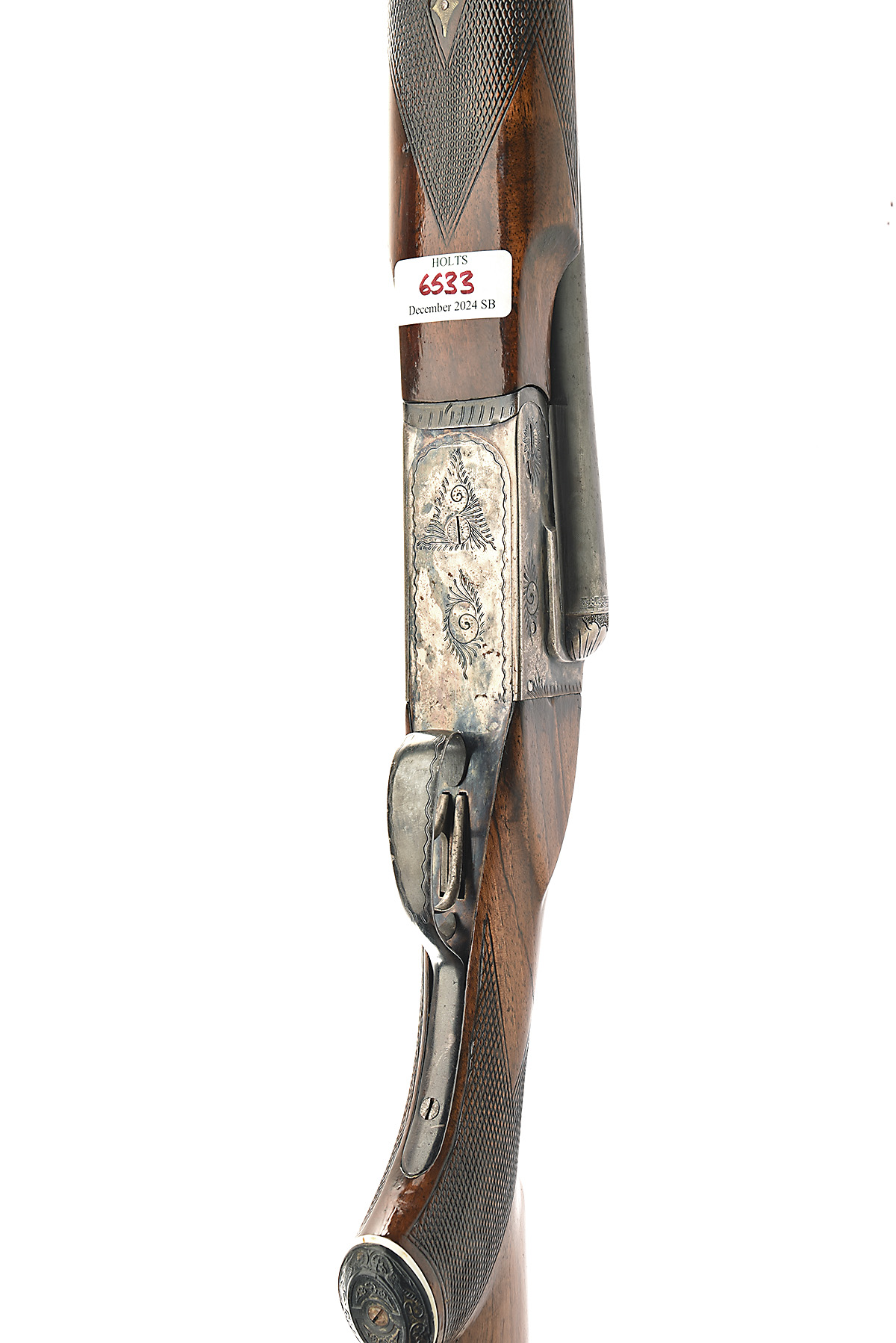 MIGUEL LARRANAGA 10-BORE (89MM) BOXLOCK NON-EJECTOR WILDFOWLING GUN, serial no. 30769, dated 1974, 32 1/4in. nitro barrels, 89mm chambers, bored approx. imp. cyl. and 3/4 choke, bolstered action, removable striker discs, automatic safety, border and partial scroll engraving, 14 1/4in. pistolgrip stock including 3/4in. ventilated rubber recoil pad, weight 11lb. 2oz.