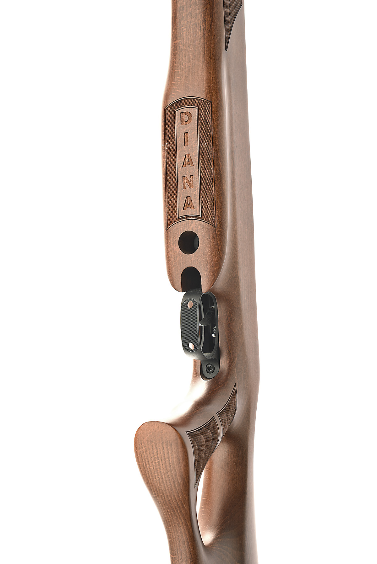 for 2015, 17 1/2in. unsighted barrel including permanently attached sound moderator, sliding breech, blued air chamber with sight rail, manual safety, ambidextrous chequered thumbhole stock with cheekpiece, 14 1/2in. pull including rubber recoil pad