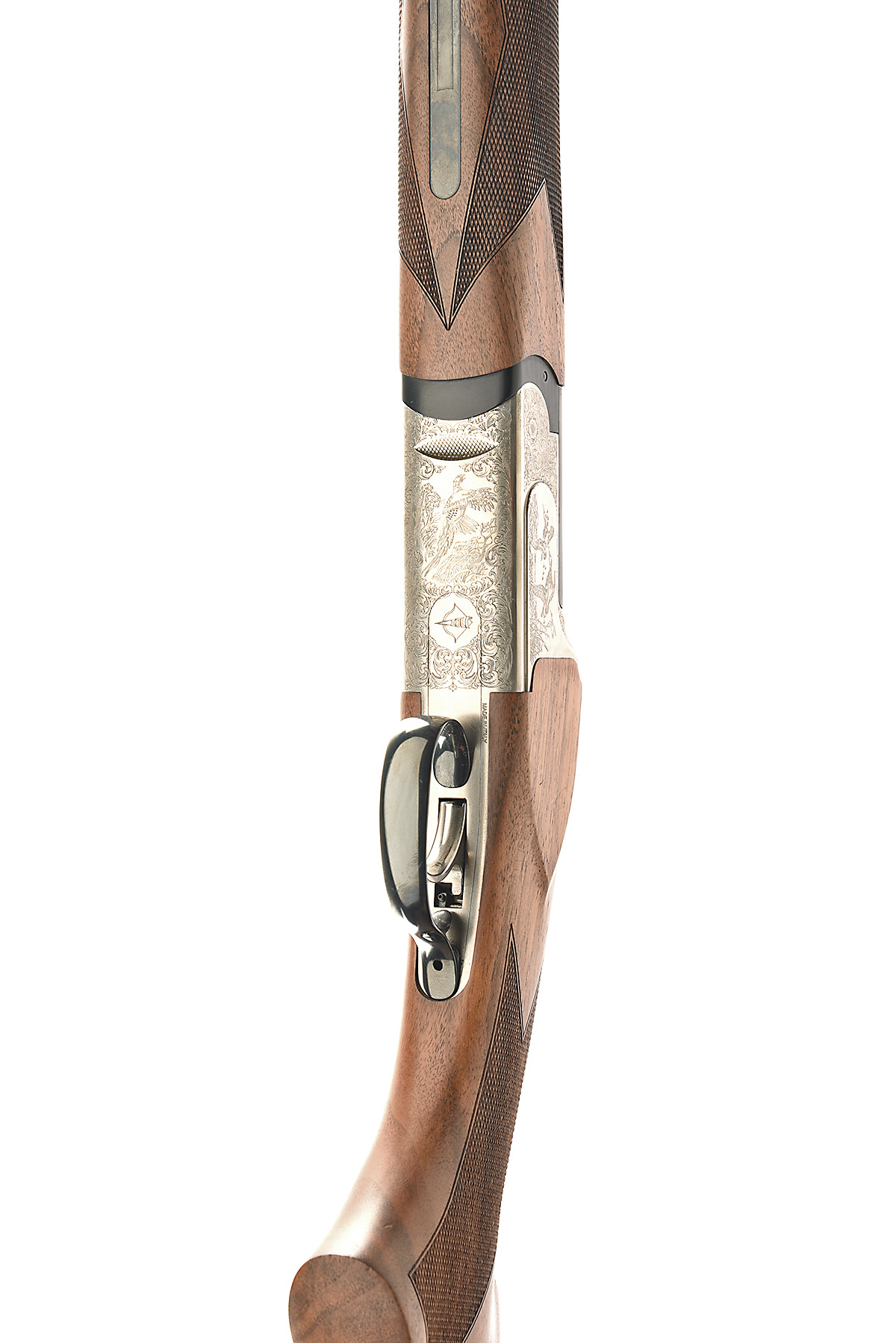 ANTONIO ZOLI 20-BORE 'COLUMBUS' SINGLE-TRIGGER OVER AND UNDER EJECTOR, serial no. 247082, for 2014, 29 1/2in. nitro barrels with tapered ventilated matt top-rib, 3in. chambers, multichokes (with spares), hold-open toplever, manual safety with integral barrel selector, game and scroll engraving, bright finish, 15in. pistolgrip stock including 3/4in. recoil pad, weight 7lb., in a Famars universal case