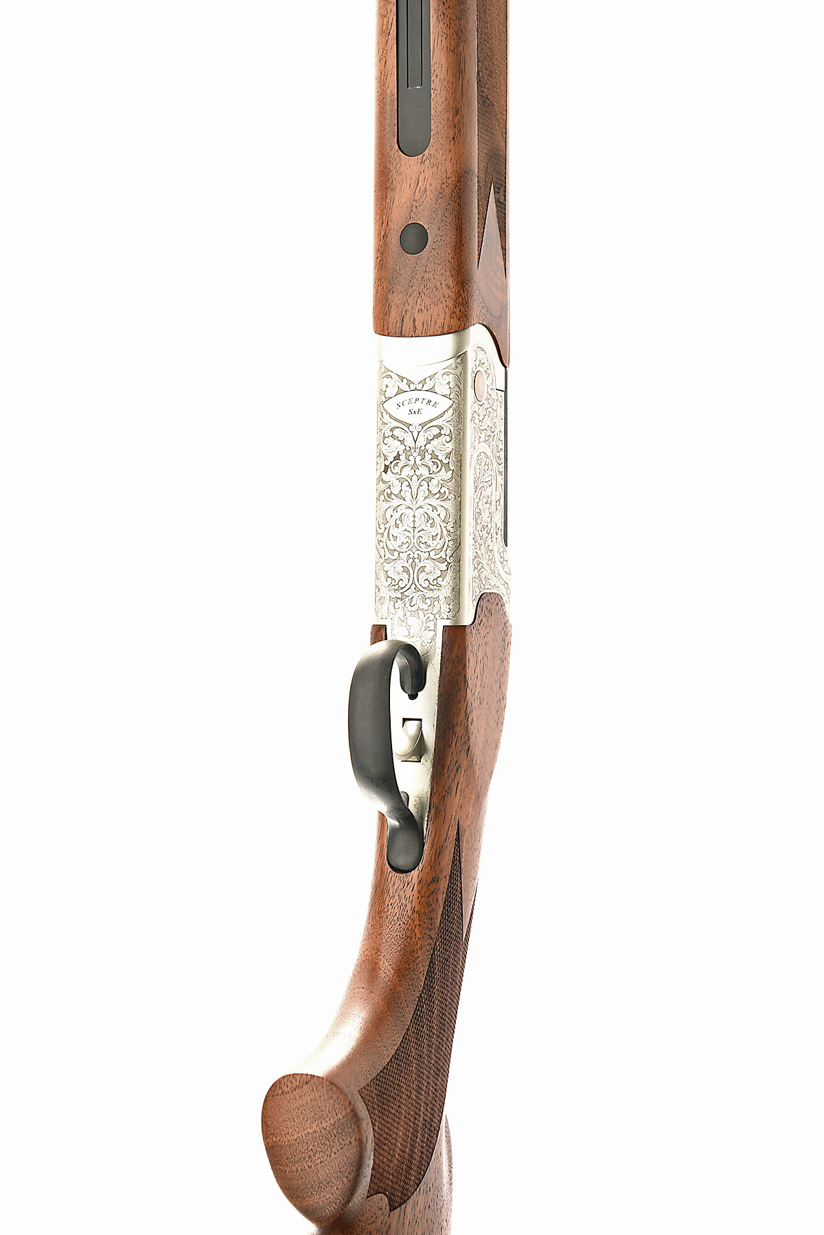 A VIRTUALLY UNUSED KOFS .410 (3IN.) 'SCEPTRE SxE' SINGLE-TRIGGER OVER AND UNDER EJECTOR, serial no. 18110927, circa 2018, 30in. nitro reproved barrels with 7mm ventilated matt top-rib, ventilated mid-rib, 3in. chambers, multichokes (with spares), hold-open toplever, manual safety with integral barrel-selector switch, lightweight alloy action, acanthus scroll engraving, 14 1/2in. pistolgrip stock including 7/8in. recoil pad, weight 5lb. 9oz., in a case
