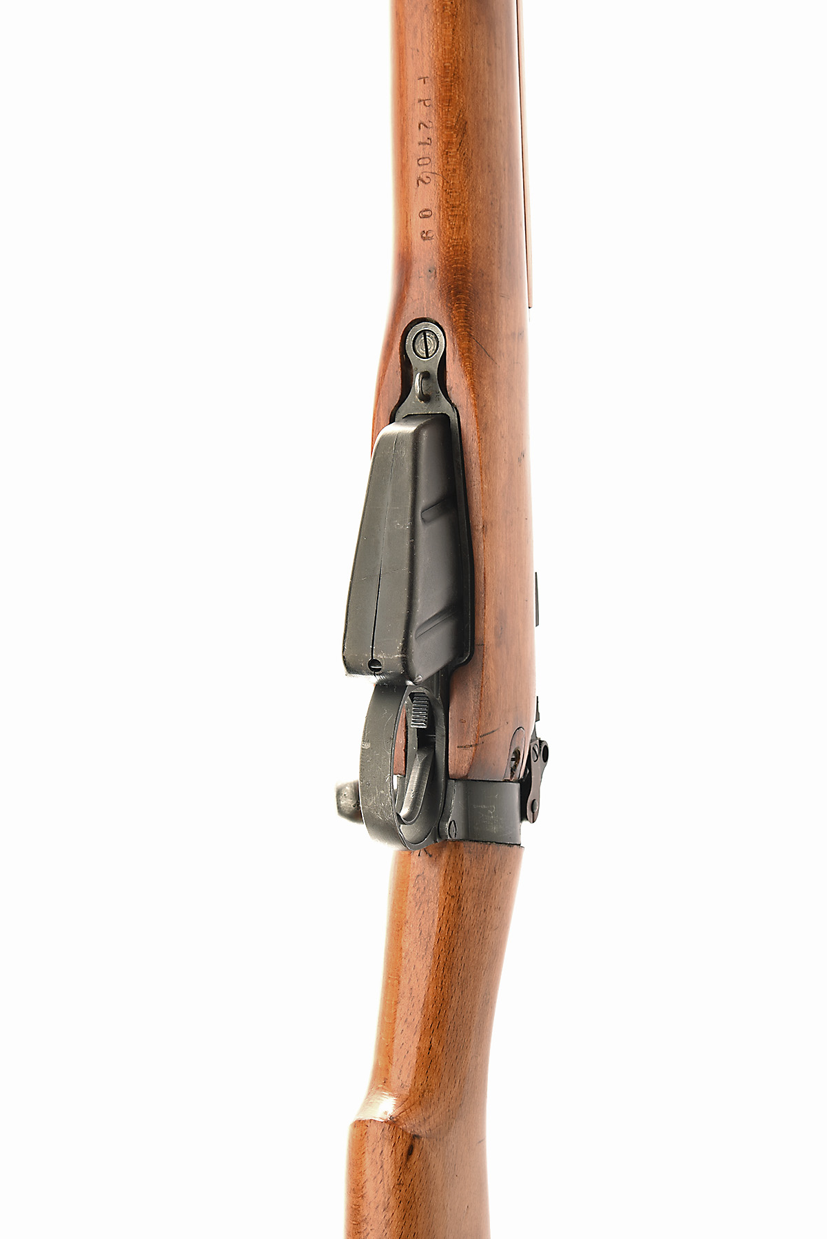 ENFIELD .303 'No 4 MK2(F)' BOLT-MAGAZINE SERVICE RIFLE, serial no. PF270209, circa 1953, 25in. nitro barrel, ramp-mounted fore-sight, folding rear battle-sight, manual safety, detachable box magazine, full-length stock, brass butt-plate with trap door, sling swivels