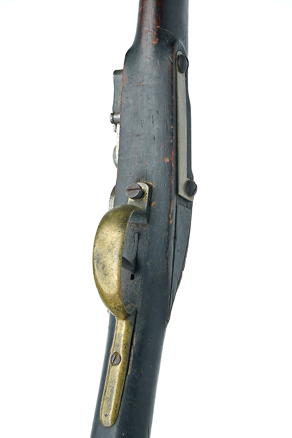 AN .800 FLINTLOCK SWEDISH 1791 PATTERN MUSKET, no visible serial number, with 42in. iron barrel, large lock with dog-catch for cock, walnut full-stock and brass furniture, missing ramrod and fore-end nose-cap, worn