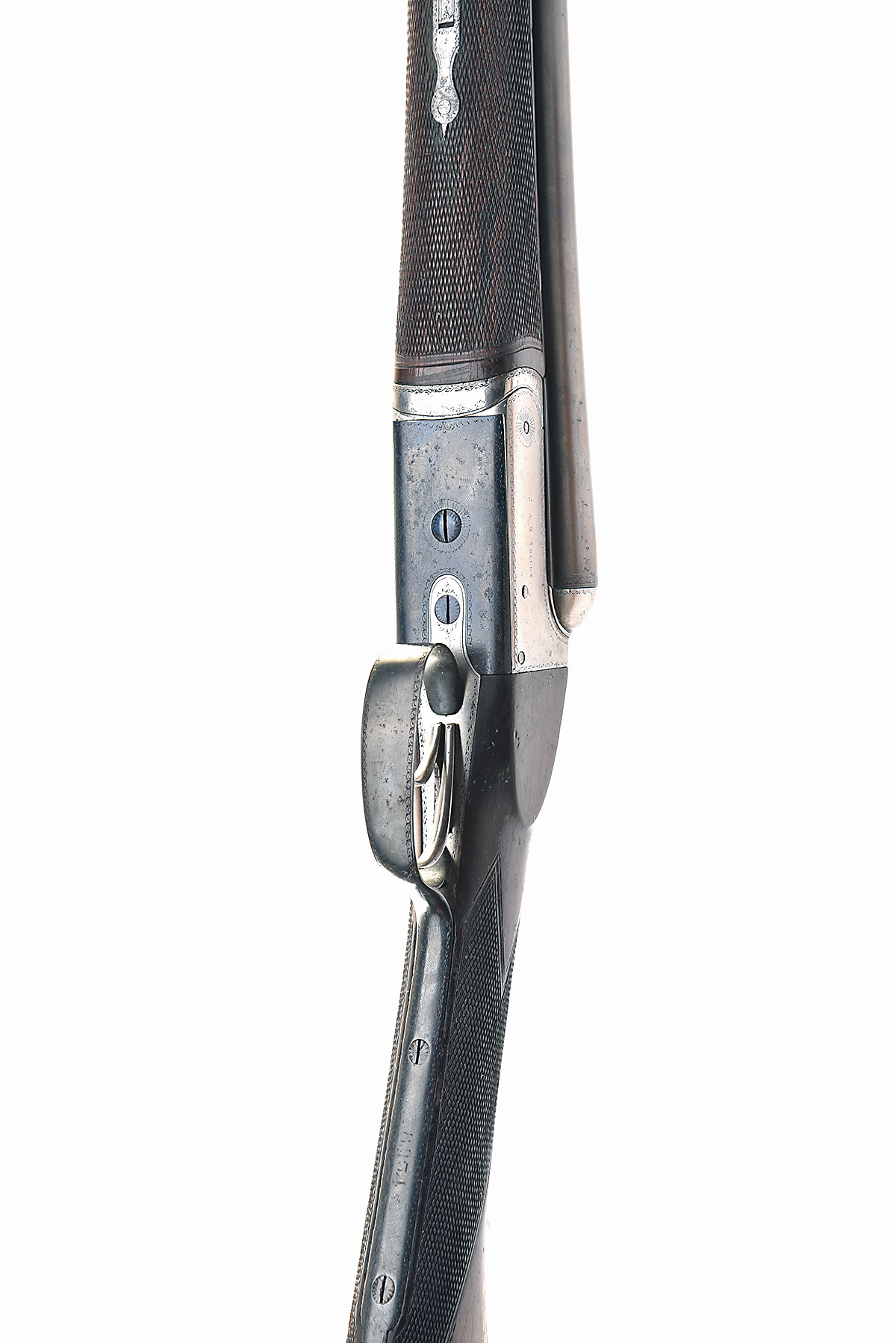 J.& W. TOLLEY 12-BORE BOXLOCK NON-EJECTOR, serial no. 8054, circa 1900, 30in. nitro replacement barrels, 2 1/2in. chambers, bored approx. imp cyl. and full choke, treble-grip action, automatic safety with gold-inlaid 'SAFE' detail, border engraving, brushed bright and reblued finish, 14 1/4in. stock including buttplate, fore-end with Deeley & Edge release catch