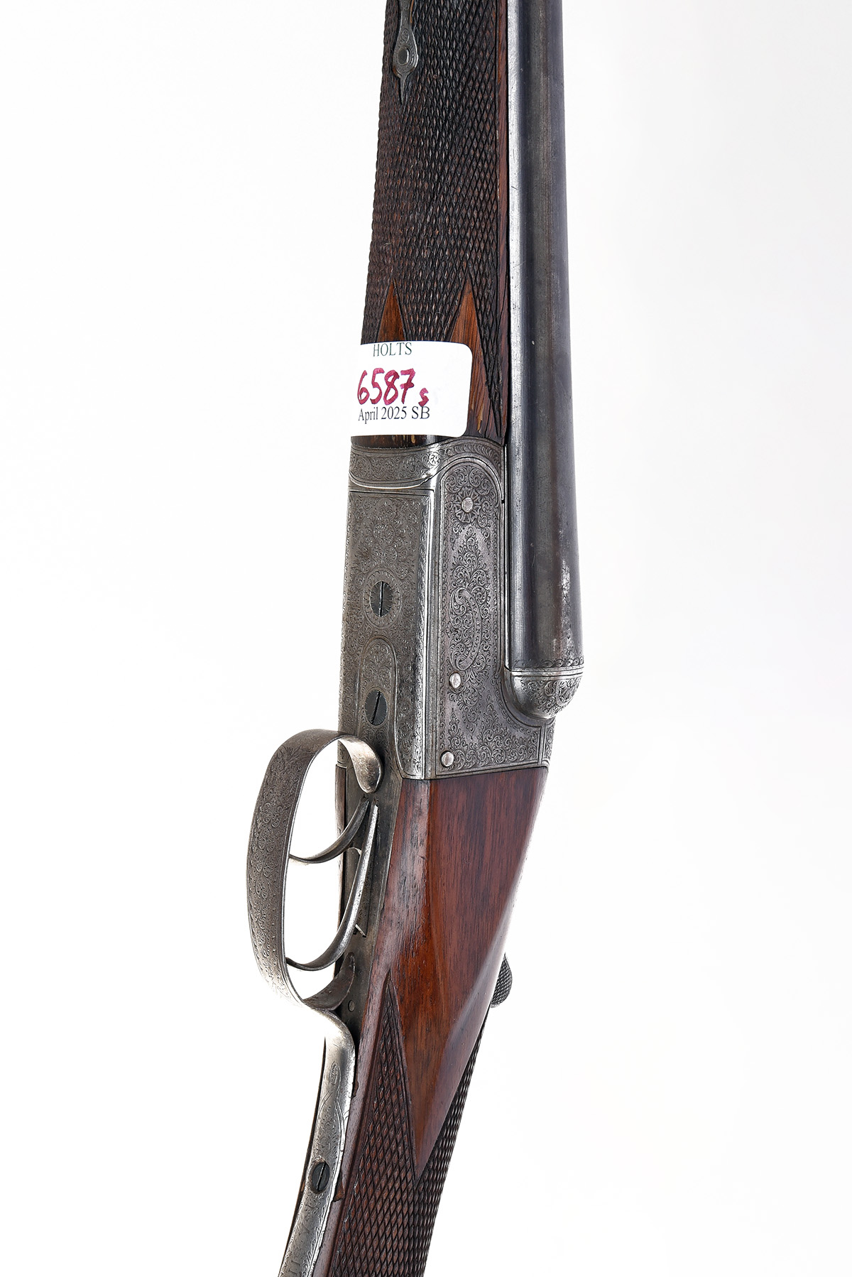 CHAS INGRAM 20-BORE BOXLOCK EJECTOR, serial no. A5114, circa 1930, 28in. nitro barrels, rib engraved 'CHARLES INGRAM. 10 WATERLOO ST. GLASGOW.', 2 1/2in. chambers, bored approx. imp. cyl. and 3/4 choke, treble-grip action, automatic safety, border and acanthus scroll engraving, 14 3/4in. replacement stock, weight 5lb. 13oz., in a leather slip