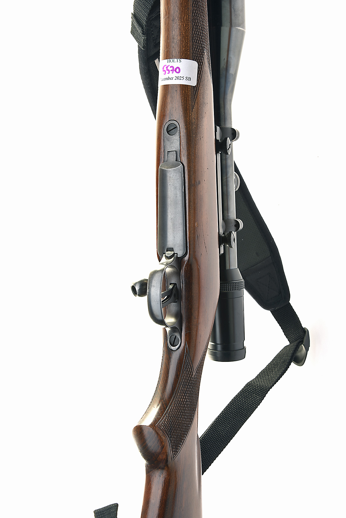 BRNO .243 WIN. 'MOD. ZKK-601' BOLT-MAGAZINE SPORTING RIFLE, serial no. 52093, dated 1991, 22 1/2in. nitro reproved barrel (in 2025), fitted with a stainless sound moderator, receiver fitted with a Swarovski Optik Habicht 3-12x56 Nova telescopic sight, serial no. L631925932, in quickly-detachable mounts, manual safety, hinged floorplate, blued finish, pistolgrip halfstock, 14in. pull including buttplate, sling, weight 11lb. 5oz.