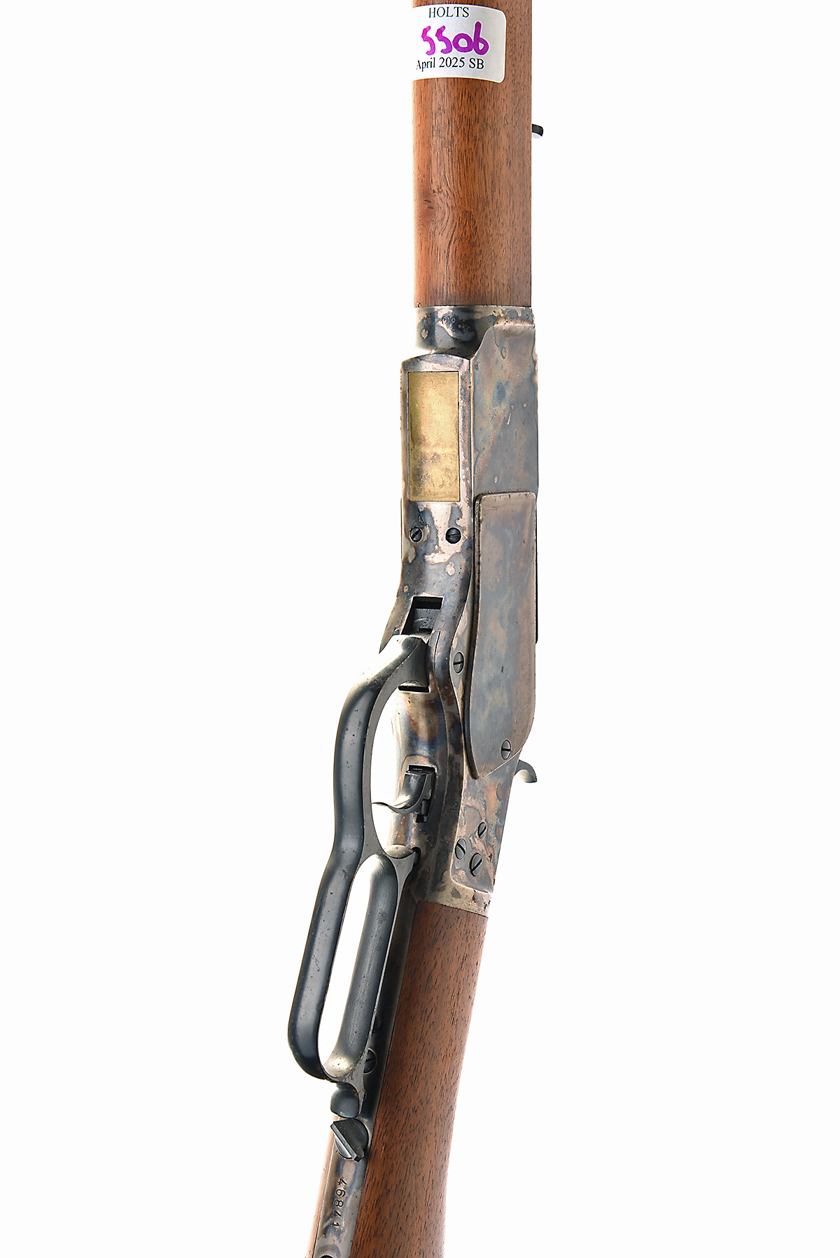 A. UBERTI .44-40 'MOD. 73 SPORTING' LEVER-ACTION REPEATING RIFLE, serial no. 46841, for 1982, 24in. octagonal barrel, adjustable open rear sight, dovetailed blade fore-sight, full-length fixed tubular magazine, sliding dust cover, colour-hardened slab-sided action, 12 3/4in. stock including crescent steel buttplate, weight 8lb. 1oz.