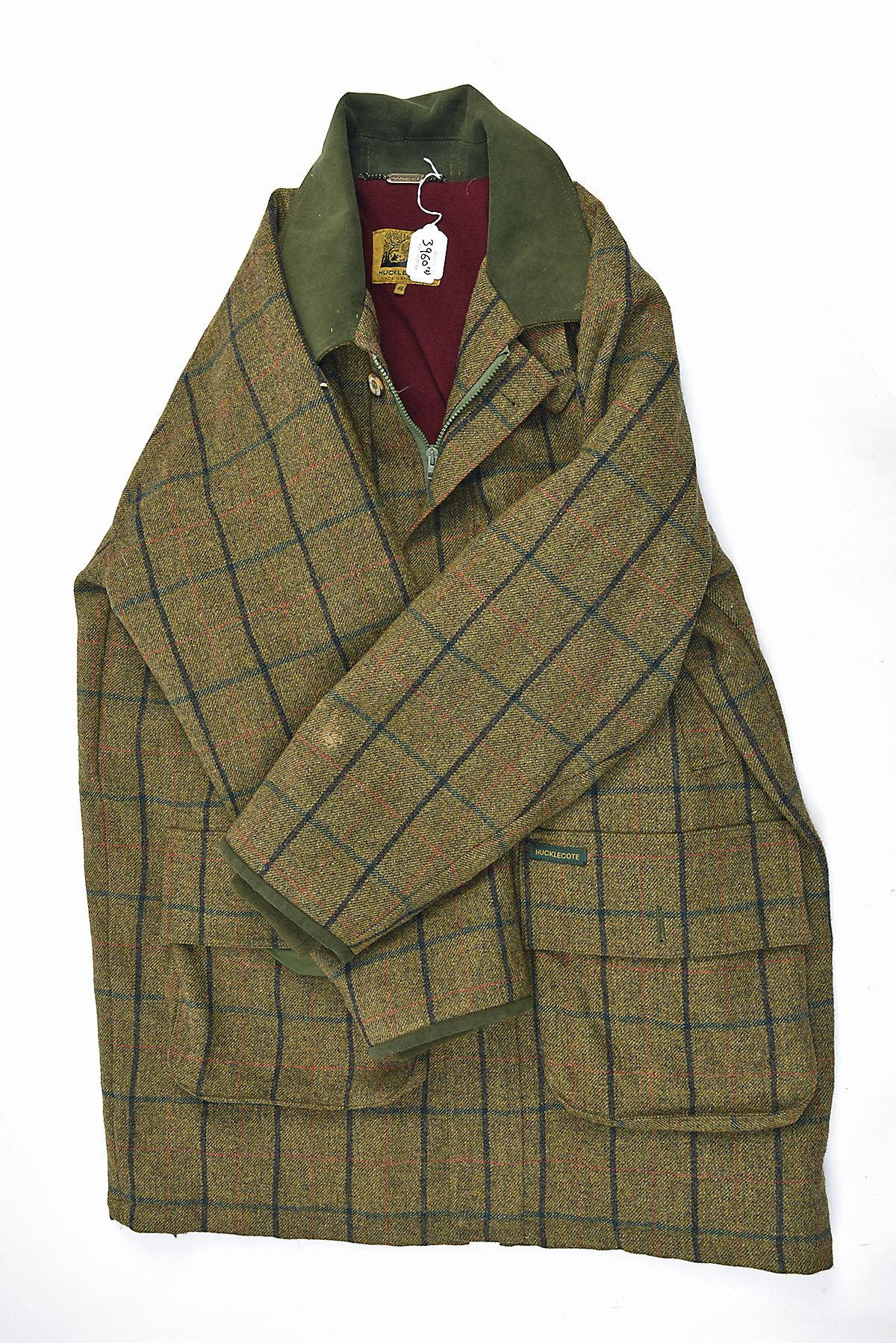 TWO 'HUCKLECOTE' TWEED JACKETS, 1 with 'OVERCHECK' blue stripes in brown, ladies size 10, 1 with 'OVERCHECK HERRINGBONE' dark blue, green and orange stripes in green, size 46