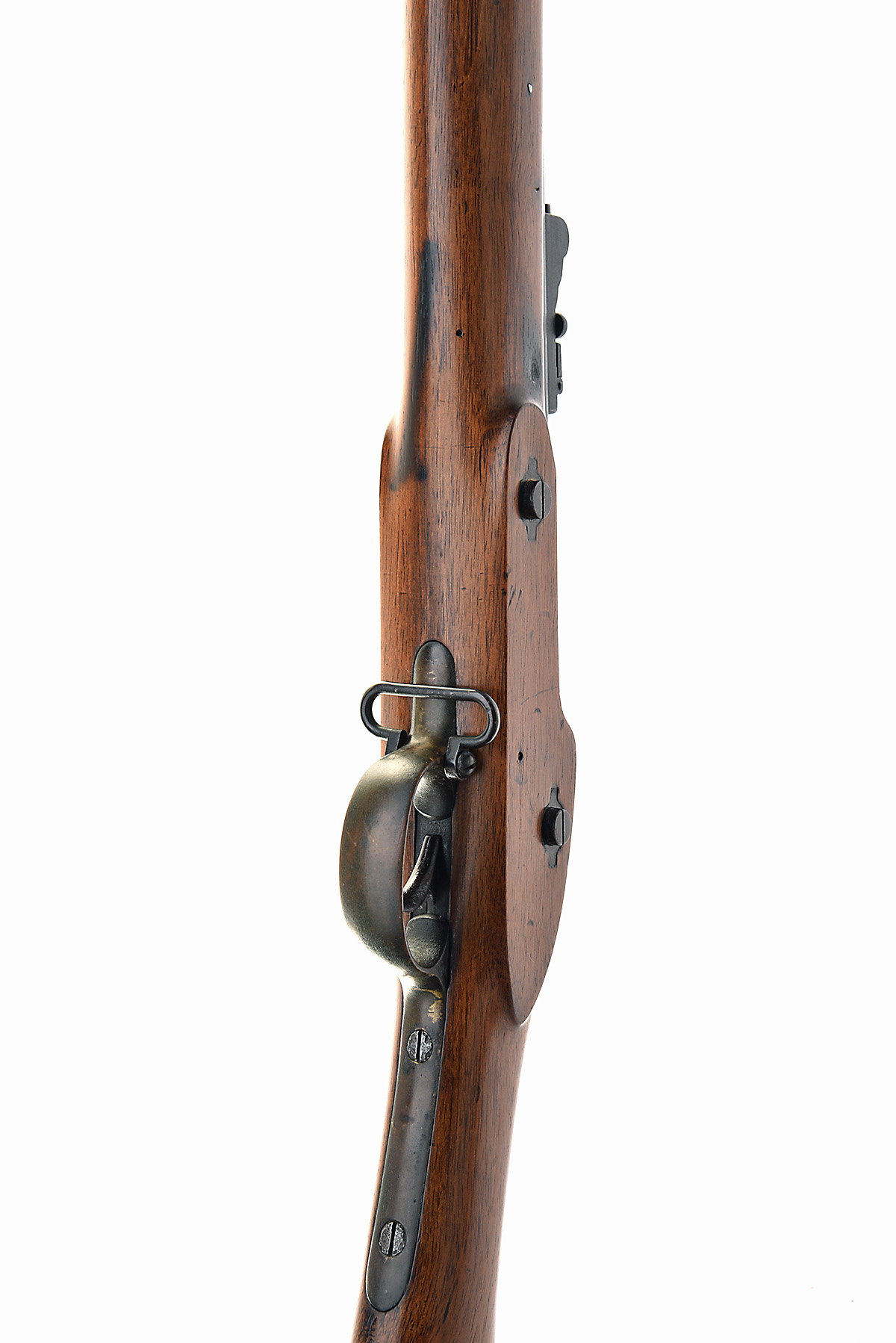 A .577 PERCUSSION PATTERN 1853 RIFLED MUSKET SIGNED TOWER, no visible serial number, with reblacked 39in. barrel, lock dated for 1859, walnut full-stock and brass furniture with three iron barrel-bands