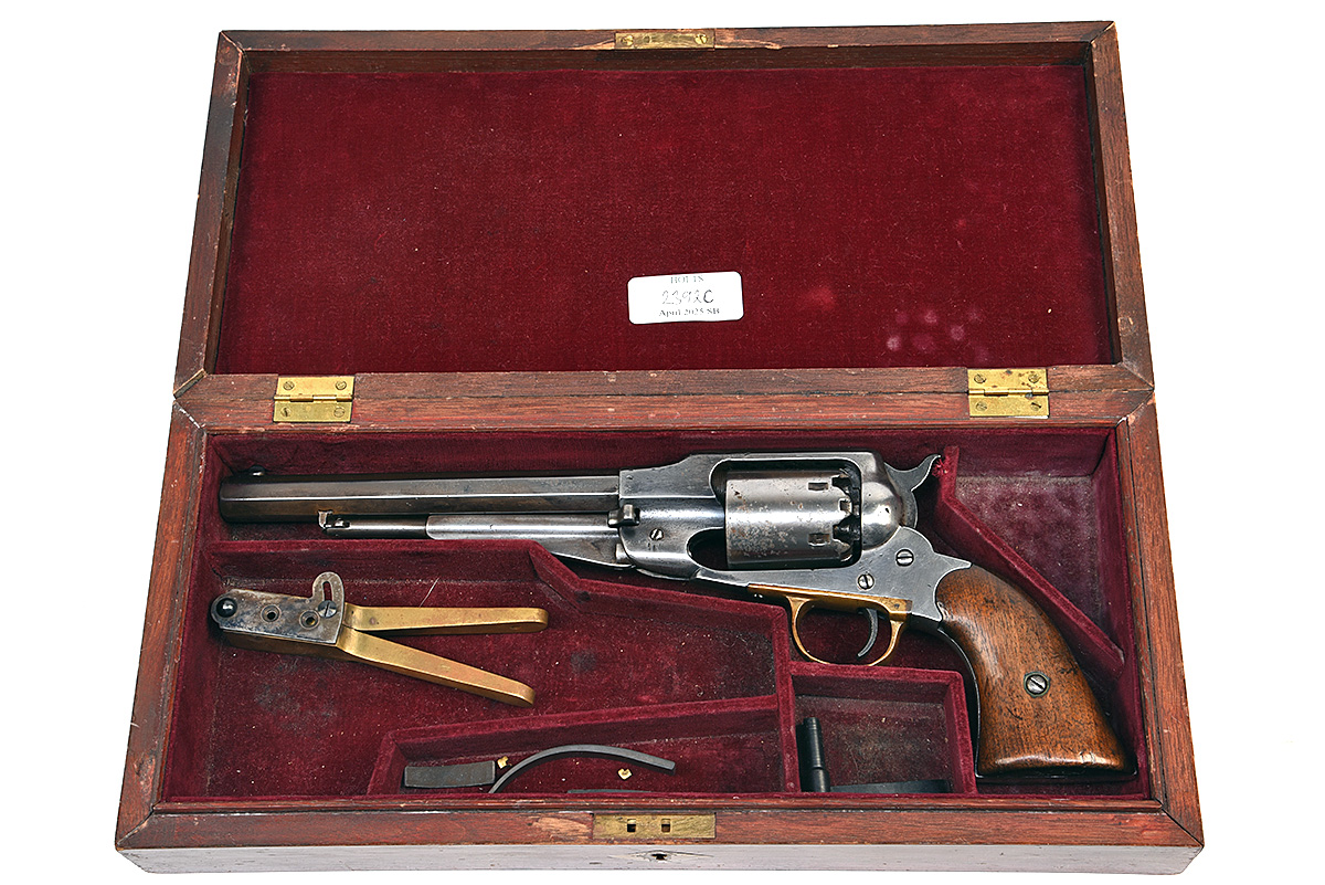 A .44 PERCUSSION REMINGTON MODEL 1858 ARMY REVOLVER, serial no. C1253, in a later case,