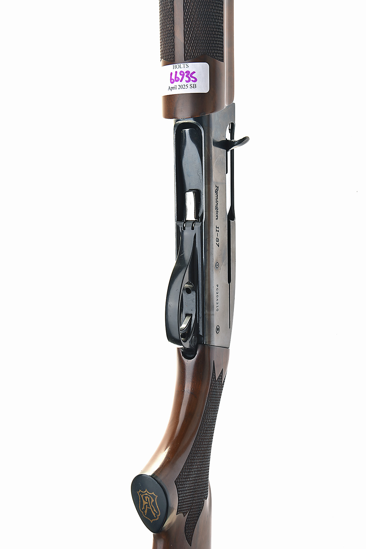 A LEFT-HANDED REMINGTON 12-BORE '11-87 PREMIER SKEET' SEMI-AUTO SHOTGUN, serial no. PC304310, for 1990, restricted magazine, 25 1/4in. nitro barrel with 7mm ventilated matt rib, 2 3/4in. chamber, multichoke (no spares), manual push-button safety, plain blacked action, 14 1/4in. pistolgrip stock including buttplate, weight 8lb. 4oz., in a Remington slip