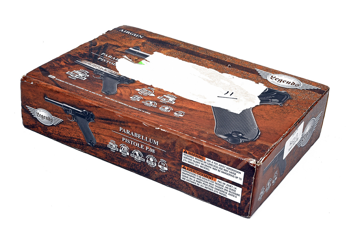 A BOXED .177 PARABELLUM P08 LUGER CO2-POWERED AIR PISTOL, serial no. 14G06418.