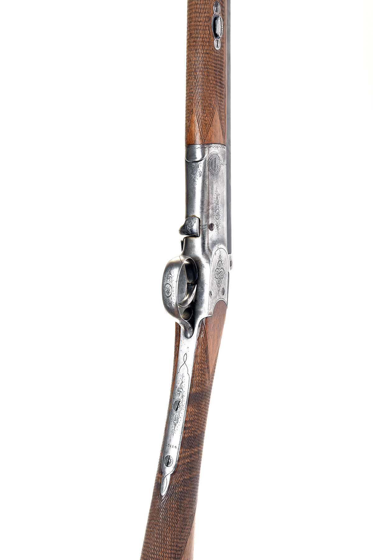A .297/300 SINGLE BARRELLED ROOK & RABBIT RIFLE, UNSIGNED, serial no. 10114, with reblued octagonal 26in. barrel, engraved side-lever action of Belgian form with central hammer, chequered walnut butt-stock and fore-end