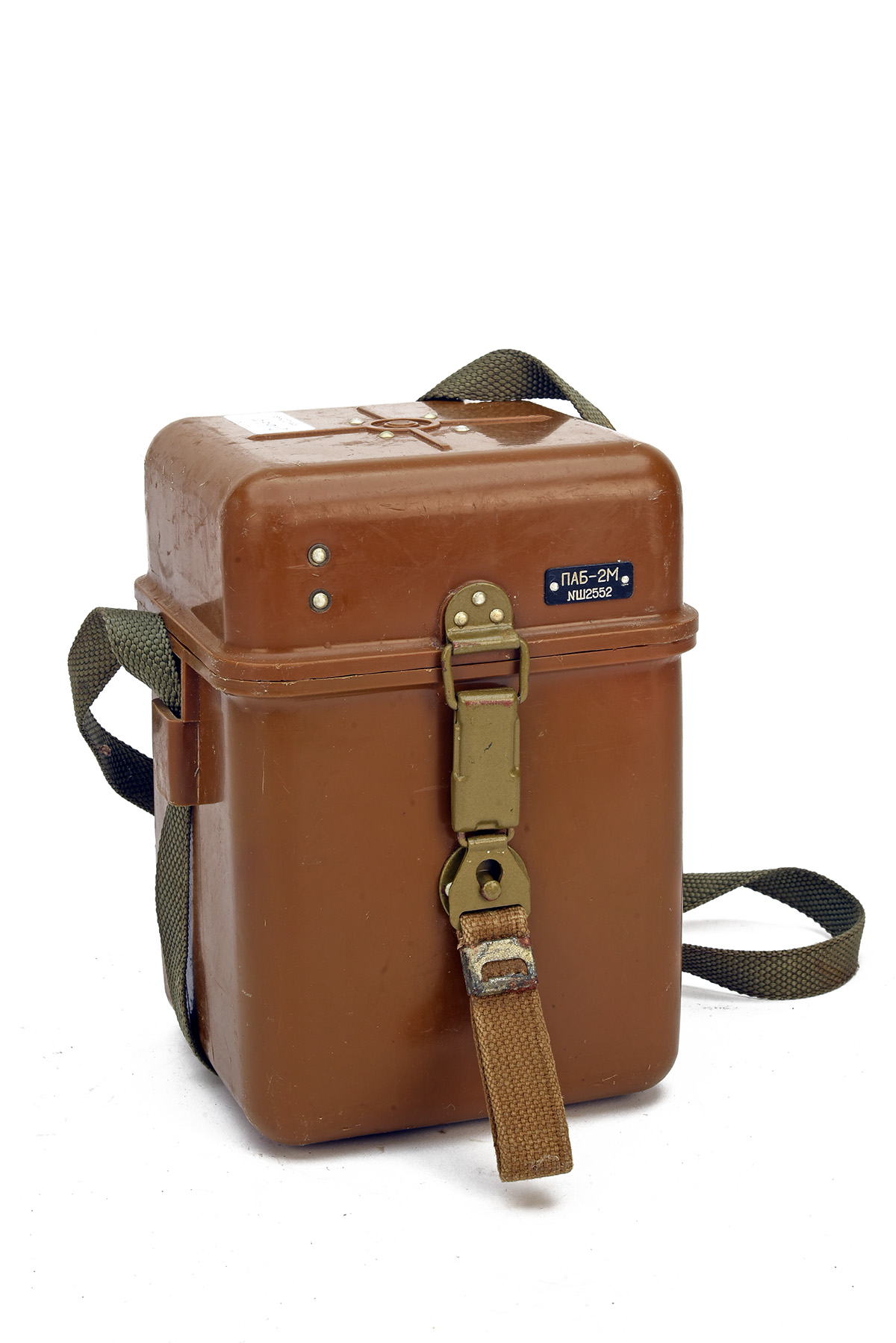 A GOOD AND RARE BOXED USSR PAB 2M PERISCOPE ARTILLERY AIMING CIRCLE SIGHT THEODOLITE, circa 1950s, together with its hard plastic case and carrying strap, and containing tools, parts and cleaning cloth, instruction manual absent but otherwise all appears complete, working and unissued, with storage knocks only to the case