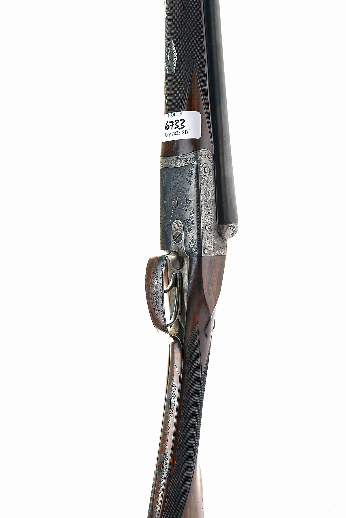 F.P. BAKER & CO. 12-BORE BOXLOCK EJECTOR, serial no. 80270, circa 1930, 28in. nitro barrels, 2 1/2in. chambers, bored approx. true cyl. and 1/2 choke, automatic safety with gold-inlaid 'SAFE' detail, border and acanthus scroll engraving, 15in. stock including buttplate, weight 6lb. 10oz.
