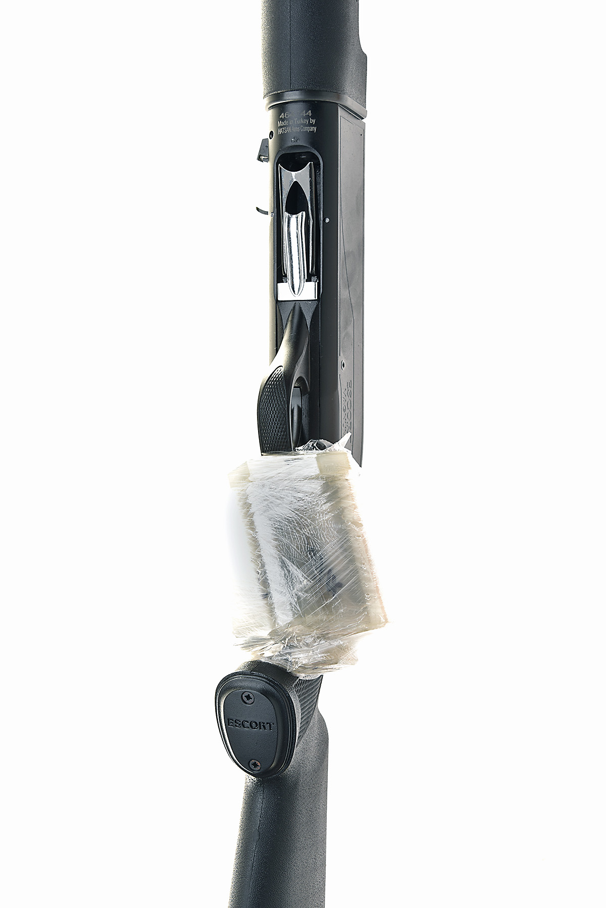 HATSAN 12-BORE (3IN.) 'ESCORT MAGNUM' SEMI-AUTOMATIC SHOTGUN, serial no. 464744, for 2017, restricted magazine, 28in. high-performance steel-shot proved nitro barrel with 7mm ventilated matt rib, 3in. chamber, multichoke (with spares), manual push-button safety, magazine cut-off switch, 15in. synthetic pistolgrip stock including ventilated rubber recoil pad, the whole in matt black finish