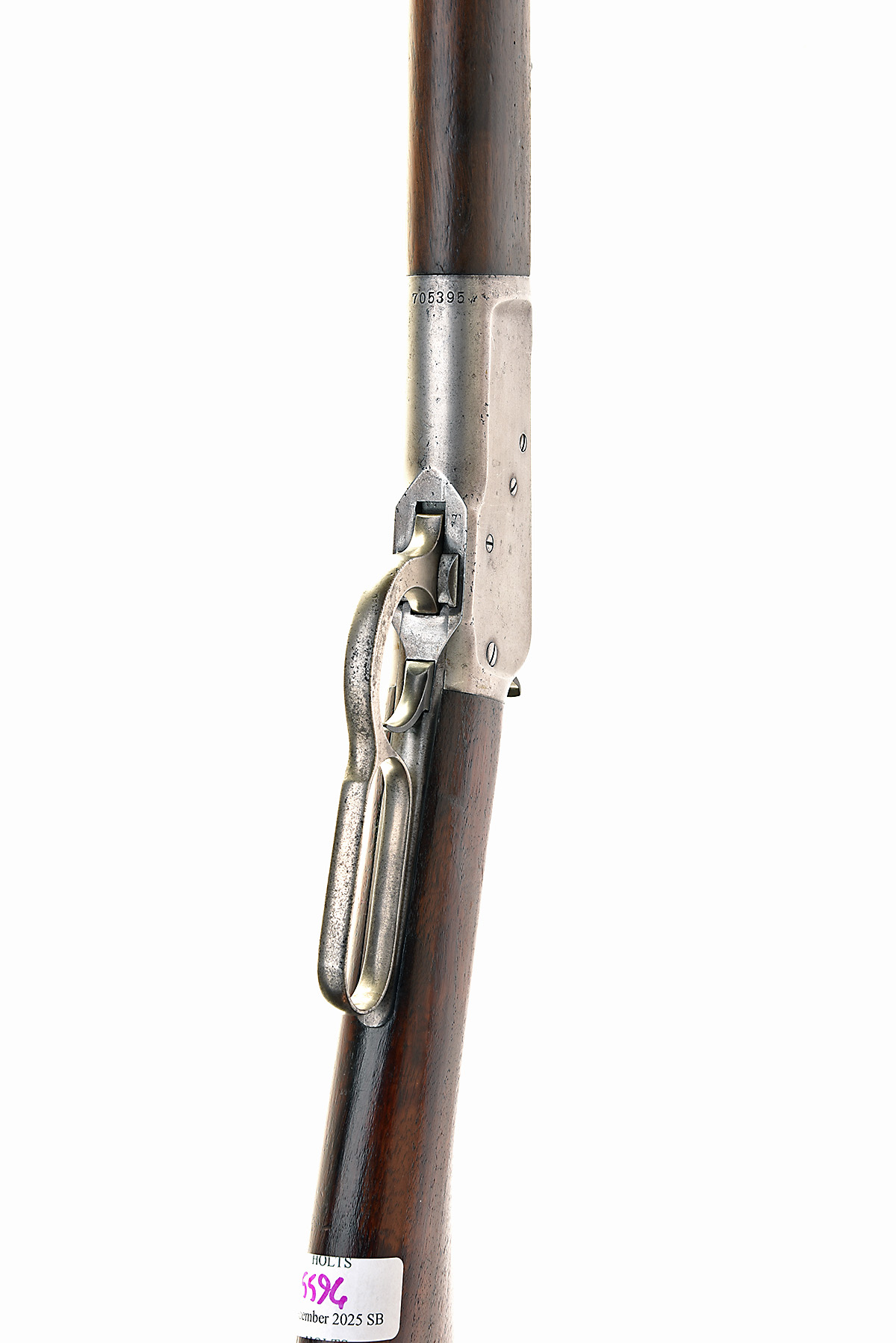 * WINCHESTER REPEATING ARMS CO. .25-20 (W.C.F). 'MODEL 1892' LEVER-ACTION REPEATING CARBINE, serial no. 705395, for 1913, 24in. octagonal nitro reproved barrel (in 2025), adjustable open rear sight, dove-tailed blade fore-sight, the left side engraved with the makers name, address and patent details, plain action, bright finish, top tang marked with the makers name and model designation, 13in. stock including steel crescent buttplate, weight 7lb. 4oz.