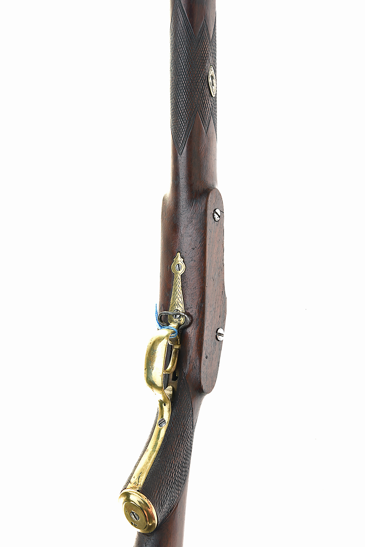 A .600 PERCUSSION SPORTING MUSKET, UNSIGNED, serial no. 40, for domestic Indian consumption, with round 32 1/2in. barrel, bar action lock with struck-out 'TOWER' stamp (probably spurious), chequered teak pistol-grip half-stock, brass furniture with iron ramrod