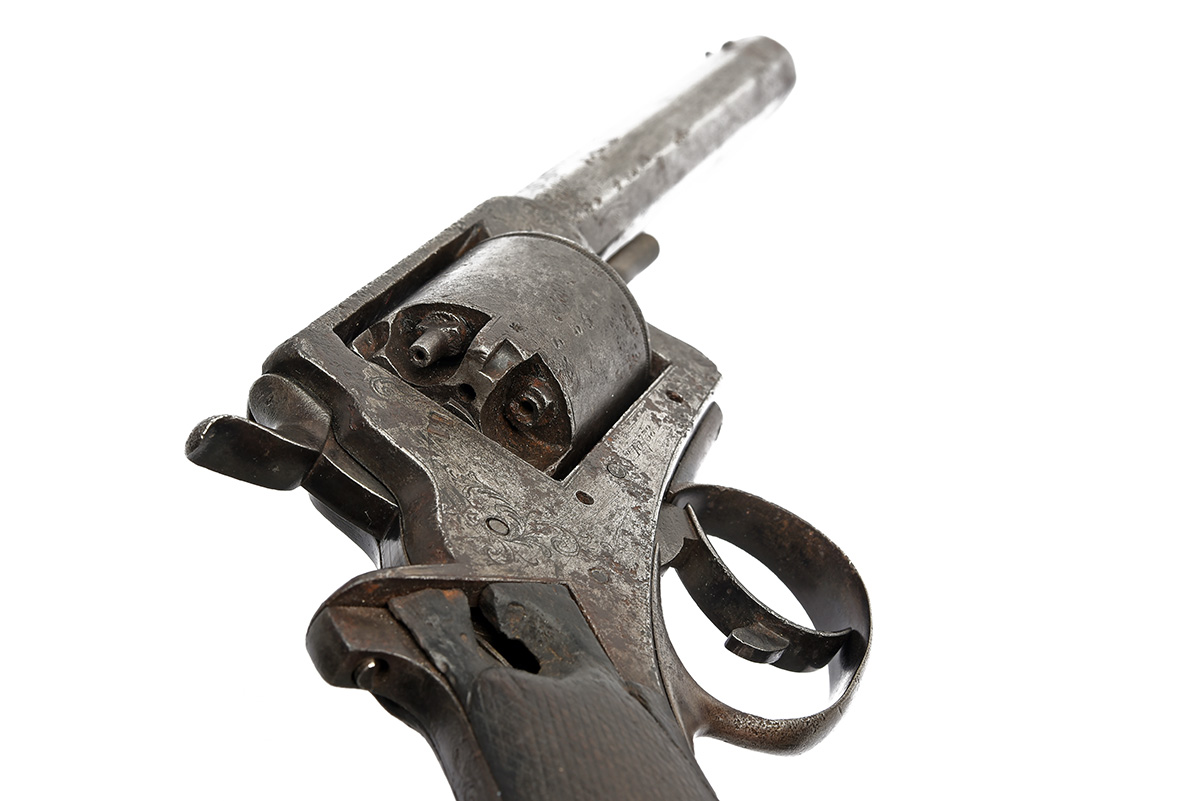 * A .44 5-SHOT PERCUSSION REVOLVER SIGNED TRANTER'S PATENT, serial no. 10738T, circa 1860s, with 6 in. octagonal barrel, closed frame, the top strap engraved 'John Hayton Graham's Town [south African retailer in Cape Colony], cylinder with Birmingham proof-marks, chequered wooden grips, heavily worn and pitted, action at fault, missing screws, grips damaged with losses
