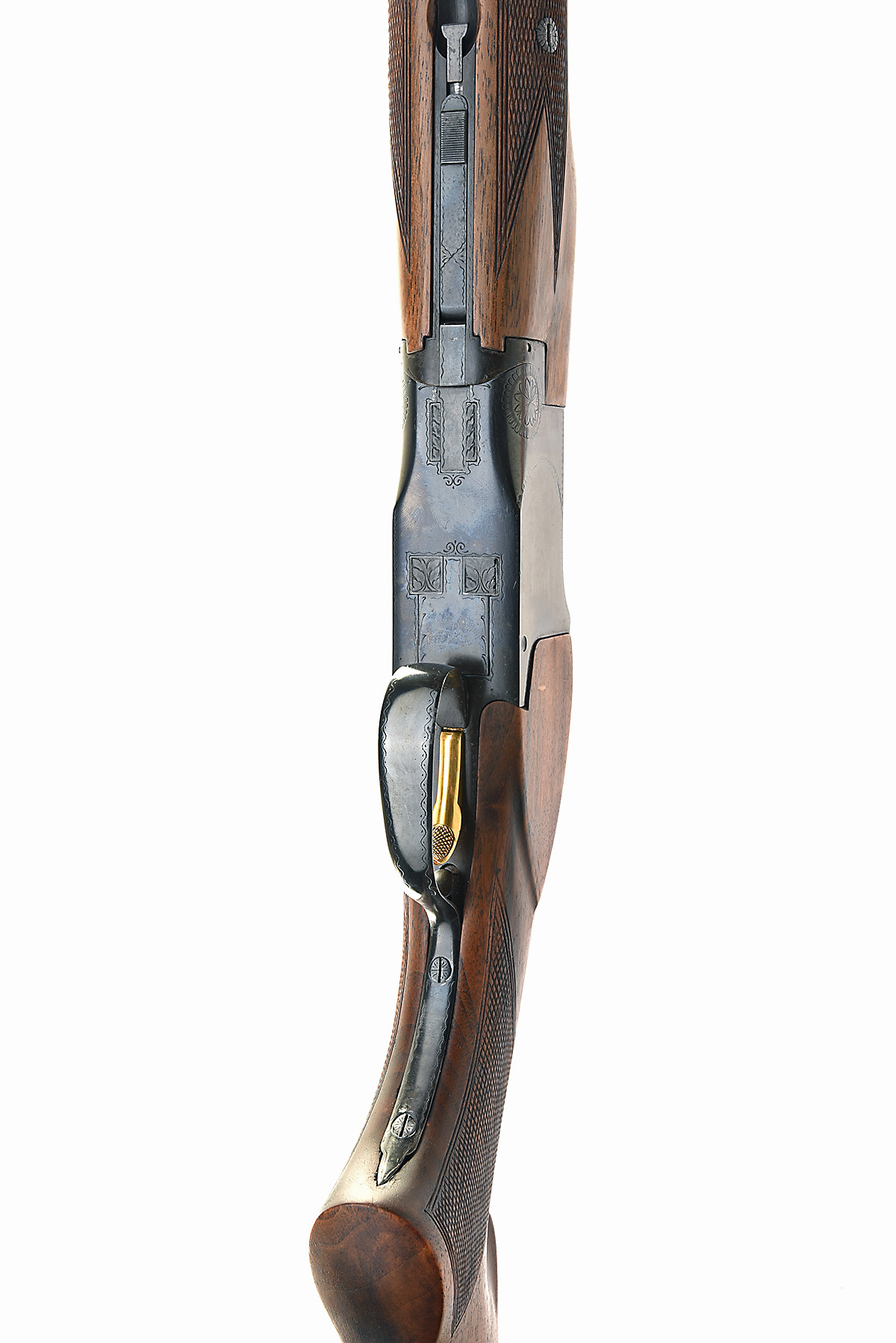FABRIQUE NATIONALE 12-BORE 'A1' SINGLE-TRIGGER OVER AND UNDER EJECTOR, serial no. 63588 S6, dated 1966, 26 3/8in. nitro barrels with 16mm ventilated matt top-rib, 2 3/4in. chambers, bored approx. imp. cyl. choke in both, hold-open toplever, manual safety with integral barrel selector switch, gold-washed single trigger, border engraving, 14 1/2in. pistolgrip stock including buttplate, weight 7lb. 10oz.