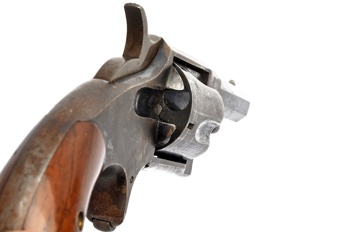 A UNITED STATES .32 5-SHOT RIM-FIRE POCKET REVOLVER SIGNED HOPKINS & ALLEN, no visible serial number, circa late 1870s, with 2 in. rifled octagonal barrel, left flat stamped ‘HOPKINS & ALLEN MFG. Co. / PAT. MAR. 28 1871', closed frame engraved to the top strap 'XL No 3 NY', fluted cylinder, sheath trigger, walnut bird's head grips, some original finish, action at fault