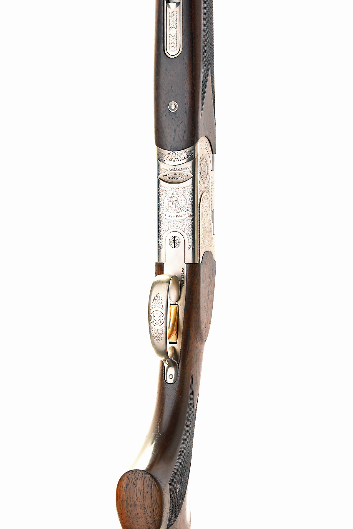 P. BERETTA 20-BORE 'SILVER PIGEON' SINGLE-TRIGGER OVER AND UNDER EJECTOR, serial no. N46016B, dated 2000, 28in. nitro barrels with 6mm ventilated matt top-rib, 3in. chambers, bored approx. imp. cyl. and 1/4 choke, hold-open toplever, automatic safety with integral barrel selector switch, gold-washed single trigger, acanthus scroll engraving, 13 3/4in. pistolgrip stock including 1/4in. extension, weight 6lb. 1oz.