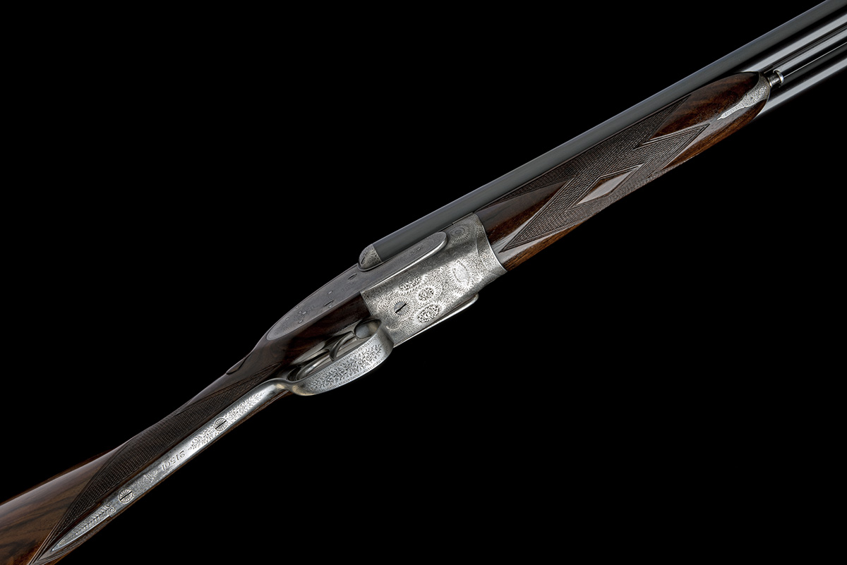 circa 1918, 30in. nitro chopperlump barrels (in 2012), rib inscription rubbed under reblue, 2 3/4in. chambers, bored approx. 1/4 and 3/4 choke, removable striker discs, automatic safety with gold-inlaid 'SAFE' detail, cocking-indicators, best fine acanthus scroll engraving with floral bouquets, retaining very slight traces of colour-hardening, 15 3/8in. well figured stock including 1in. leather covered recoil pad, weight 6lb. 14oz., in its brass-cornered oak and leather case