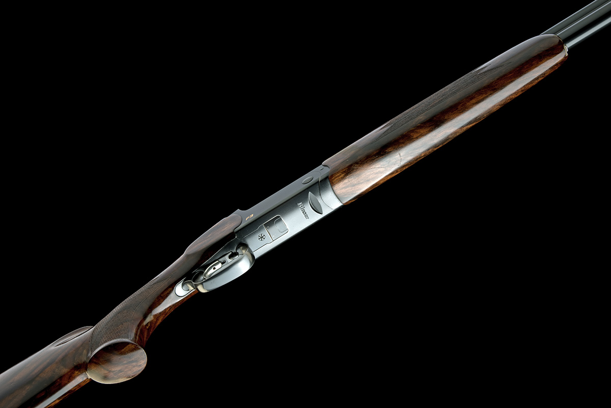 for 2008, 32in. high performance steel proof nitro barrels with 10mm ventilated matt top-rib, interchangeable high visibility fore-sights and interchangeable barrel balancer weights, 3in. chambers, multichokes (with spares, Blaser and Teague), Blaser Ejection Ball System, hold-open toplever, manual safety, single trigger with barrel selector toggle, matt black finish with yellow 'F3' lettering, 15in. well-figured pistolgrip stock with right hand palm swell and including 1in. Kick-Eez recoil pad (original Blaser pad in case), weight 8lb. 9oz., in its universal case with paperwork