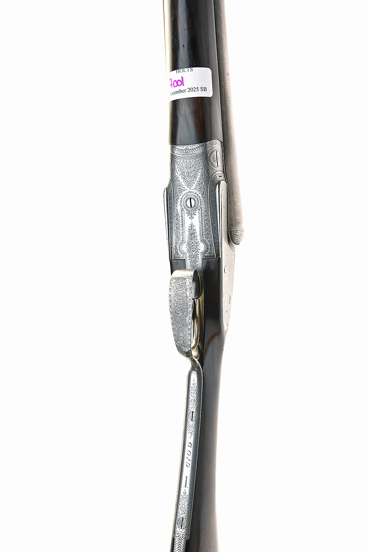STEPHEN GRANT & SONS 12-BORE SIDELOCK EJECTOR, serial no. 6019, for 1890, 28in. damascus black powder only barrels, the rib engraved 'STEPHEN GRANT & SONS/ 67A ST. JAMES'S STREET. LONDON.' and '1', the breech-edn engraved 'PATENT EJECTOR', with acanthus scroll detailing, 2 1/2in. chambers, bored approx. true cyl., removable striker discs, carved leaf fences, manual safety with gold-inlaid 'SAFE' detail, fine border and acanthus scroll engraving, retaining very slight traces of original colour-hardening and finish, 14 3/8in. figured stock, weight 6lb. 10oz.