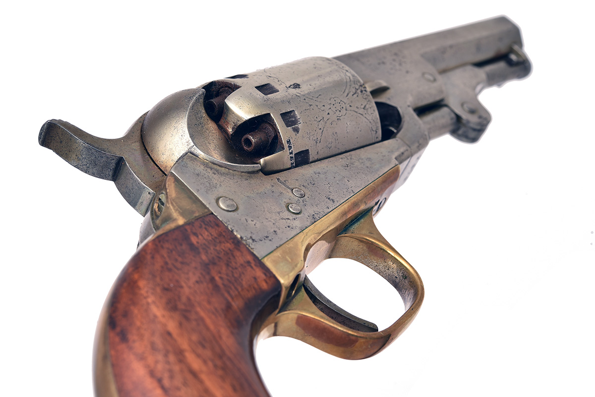 A RARE .36 PERCUSSION MANHATTAN FIREARMS CO. SIX-SHOT POCKET REVOLVER, serial no. 2874,