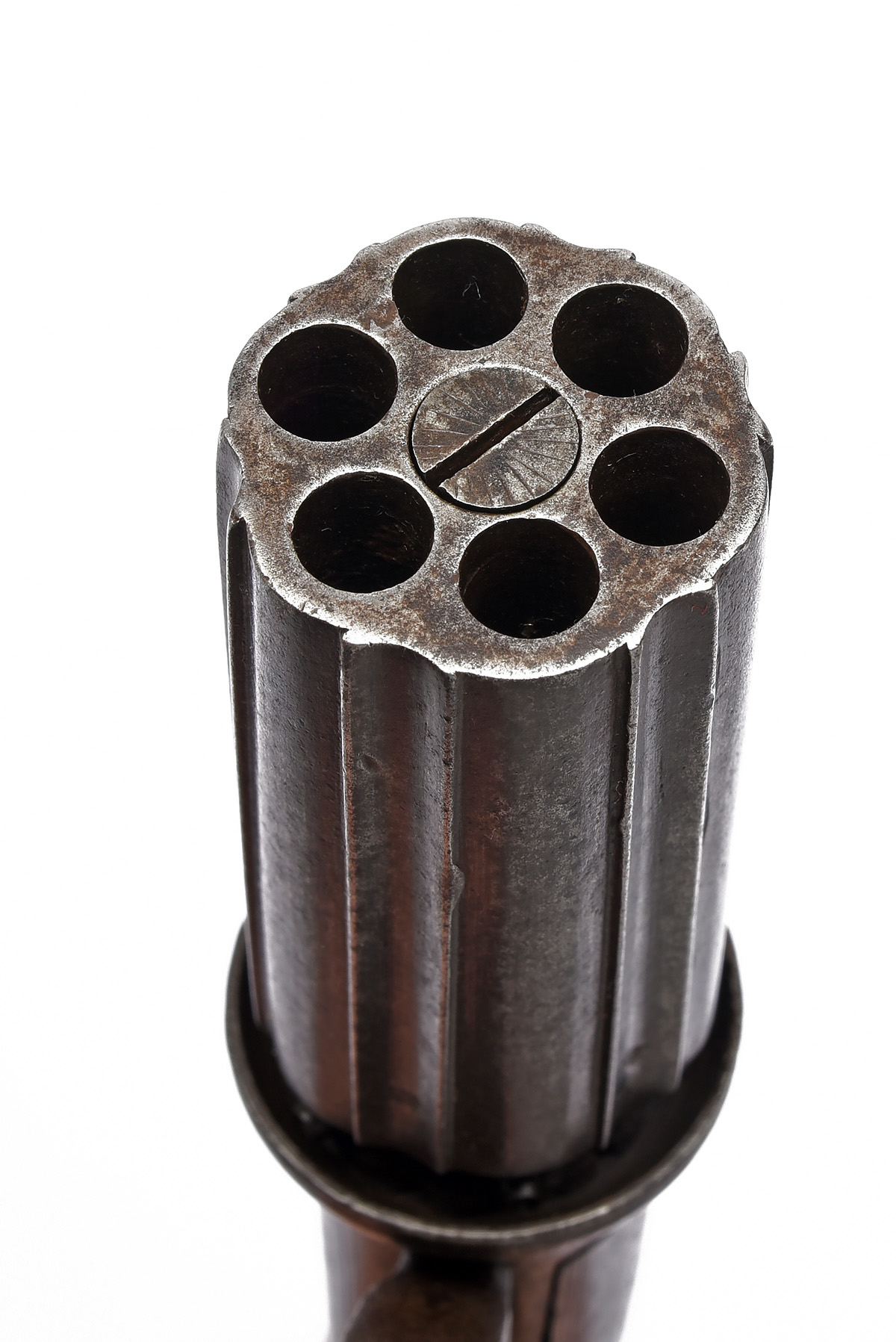 A 120-BORE 6-SHOT DOUBLE-ACTION PERCUSSION PEPPERBOX REVOLVER, UNSIGNED, no visible serial number,