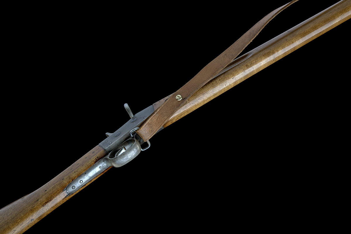 circa 1889, with blued octagonal to round 33in. barrel stamped with a crowned 'C' at breech for Carl Gustav, nose-cap bearing the blade fore-sight, standing notch and ladder rear-sight, colour hardened action, pale beech butt-stock, the left side with a large circular inlet repair, full-length fore-end with single iron barrel-band and iron under-barrel clearing rod, much original finish throughout and fitted with a later leather sling