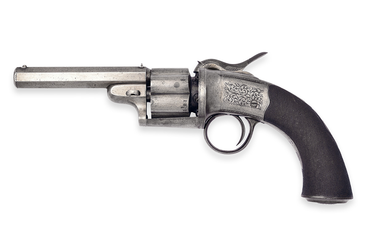 WITTON DAW & CO., LONDON A CASED 60-BORE PERCUSSION RECIPROCATING TRANSITIONAL REVOLVER WITH DAW'S IMPROVEMENT, serial no. 1181,
