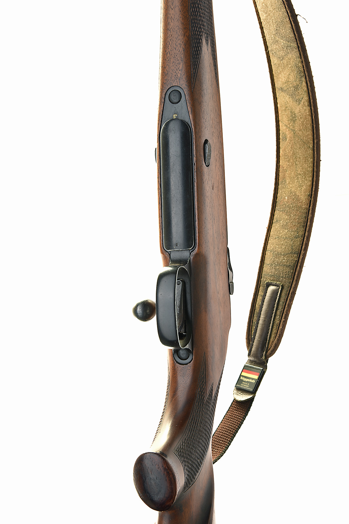 MAUSER-WERKE OBERNDORF .30-06 'MOD. 77' BOLT-MAGAZINE SPORTING RIFLE, serial no. 03920, for 1984, 23in. nitro barrel, ramp-mounted blade fore-sight, leaf rear-sight, action with the bottom mounts of Apel detachable mounts (bottom mounts only), manual safety, detachable magazine, ell figured pistolgrip stock with ventilated recoil pad and cheekpiece, canvas sling