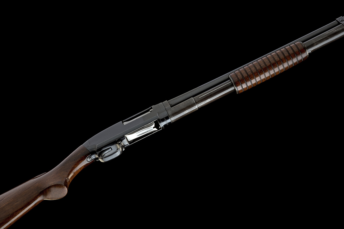 A 16-BORE 'MODEL 12' PUMP-ACTION SHOTGUN, serial no. 910366,