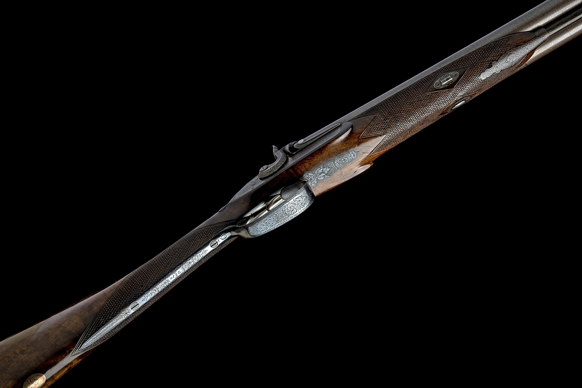 GEORGE GIBBS, BRISTOL A 13-BORE PERCUSSION DOUBLE-BARRELLED SPORTING GUN, serial no. 2716,