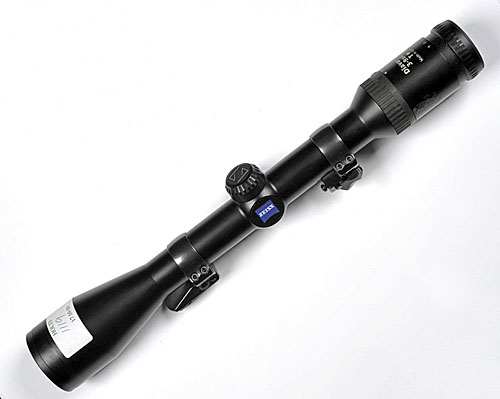 24in. blued nitro barrel, ramp-mounted bead fore-sight with flip-up moon-sight with detachable tunnel cover, quarter rib signed 'RITTERBUSCH SEEHAUSEN .416 RIGBY' in gold and with rear-sight of one standing and three folding leaves, blued double square bridge receiver with a gold-inlaid recumbent lion and lioness against an engraved savannah back-ground, fitted with a Zeiss 'Diavari V' 3-9x42 telescopic sight in Apel quickly-detachable mounts, 14 1/4in. highly figured pistolgrip stock including 1in. leather-covered recoil-pad, raised cheek-piece, chequered grip and fore-end, dark horn fore-end cap, blued mounts including scroll engraved trigger-guard, bright magazine floor-plate engraved with scrollwork surrounding a vignette involving a gold-inlaid bust of a cape buffalo, the sights, receiver and mounts all with gold-inlaid border lines, sling eyes, in full length fitted brass-cornered leather rifle case