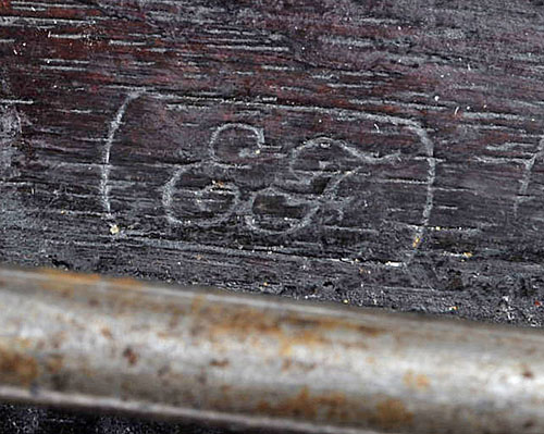 arsenal conversion to centrefire from rimfire, with 22in. barrel marked 'NEW MODEL 1863' towards the breech, white metal blade fore-sight, Lawrence patent rear-sight calibrated to 800 yards, straight breech-block, back-action lock marked 'C. SHARPS' PAT OCT 5TH 1852', 13 3/4in. walnut half-stock struck with two inspection stamps and incised '7 CAV' and 'AK' on the left side of the butt, iron butt-plate, saddle-bar and suspension-ring (some discolouration throughout).