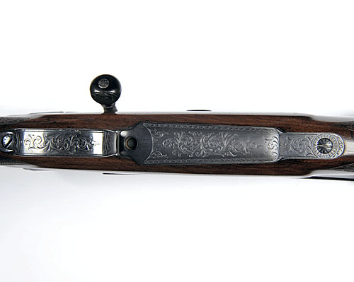 28in. blued nitro barrel signed 'WESTLEY RICHARDS & CO. LONDON', matt block-mounted bead fore-sight with tunnel-cover, matt block-mounted rear-sight of one standing and two folding leaves calibrated to 300 yards, blued receiver marked 'WESTLEY RICHARDS 318 ACCELERATED EXPRESS' (later cocking-piece), fitted with a Bushnell 4x40 telescopic sight on a rail, horn bolt-handle, 14 3/8in. figured pistolgrip stock (pinned around receiver, some marking) including later 1/2in. rubber butt-pad, chequered grip and fore-end, set triggers, horn pistolgrip-cap and fore-end cap, trigger-guard and magazine floor-plate each with border and scroll engraving, gold escutcheon, sling eyes (older refinish throughout).