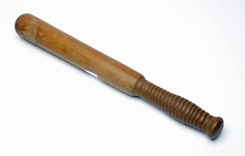 A REPRODUCTION 'GUARD OF THE ELECTOR OF SAXONY' POLEARM HEAD AND A TRUNCHEON the first 24 1/2in. overall length, the second of turned wood construction