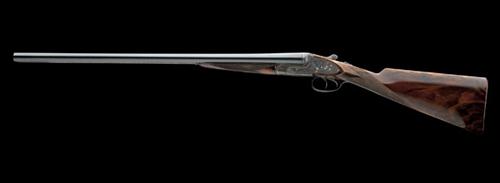 26in. nitro barrels, ribs engraved 'CHARLES HELLIS & SONS LTD. 119 EDGWARE ROAD. HYDE PARK. LONDON. W.', and gold-inlaid '1' and '2', 2 1/2in. chambers, bored approx. 1/2 and full choke, treble-grip actions, toplevers gold-inlaid '1' and '2', automatic safeties with gold-inlaid 'SAFE' details, beaded border and bold acanthus scroll engraving, the lockplates and triggerguards with crossed feather motifs, rolled-edge triggerguards, retaining virtually full renewed colour-hardening and finish, 14 1/8in. highly-figured replacement stocks with diamond grips, weight 6lb. 2oz., in a Beretta universal case