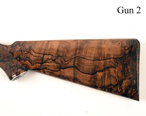 32in. nitro barrels with 7mm raised matt ribs gold-inlaid '1' and '2' with flourishes of scroll engraving at the breech ends, 2 3/4in. chambers, bored approx. 1/4 and 3/4 choke (both), hold-open toplevers, automatic safeties with integral barrel selector switches, the actions and furniture carved in relief with bold acanthus scroll set against a matt background, the triggerplates signed 'C. Marocchi', silver finish, 15in. highly-figured pistolgrip stocks with scroll carved steel pistolgrip caps, weight 6lb. 6oz. (No.1) 6lb. 3oz. (No.2), in their individual makers universal cases with spare strikers and main springs