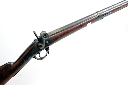 * A .700 PERCUSSION MUSKET SIGNED 'DE TULLE', MODEL '1854', no visible serial number, circa 1858, with 40-1/2in. barrel, boat-shaped fore-sight, back-action lock, walnut full-stock with iron furniture, missing under-barrel ramrod