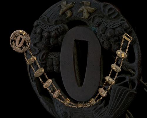 A CHAIN WAIST-BELT FORMED FROM ELEVEN 'KASHIRA' WITH A 'TSUBA' BUCKLE,