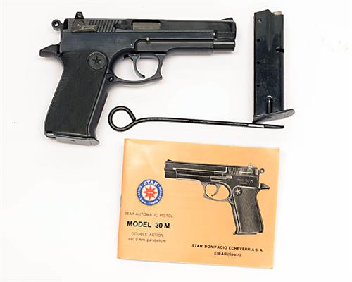 A BOXED 9mm (PARA) SEMI-AUTOMATIC PISTOL SIGNED STAR, MODEL 30MI serial no. 1683287,
