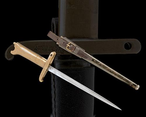 A RARE ORIGINAL WORLD WAR ONE BAYONET FOR A WEBLEY .455 REVOLVER,