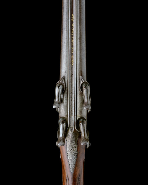 AN EXCEPTIONALLY RARE 16-BORE PERCUSSION DOUBLE-BARRELLED FOUR-SHOT SPORTING-GUN FOR SUPERIMPOSED LOADS, no visible serial number,