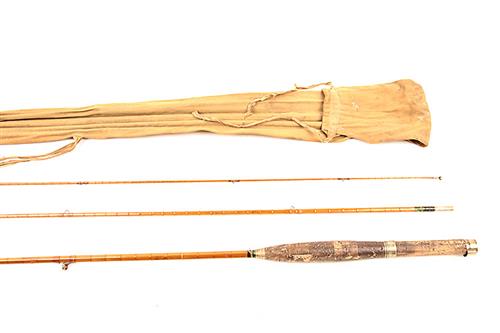 TWO VINTAGE SPLIT CANE FLY RODS, including a 'J FOREST THOMAS' 3 piece 9ft trout rod , together with a 'BAGNALL AND KIRKWOOD - THE ABERDEEN' 3 piece   9ft 6 trout rod (2)