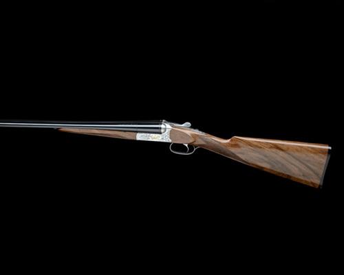 26in. nitro barrels with raised matt rib, 3in. chambers, manual safety, non-selective single-trigger, acanthus foliage engraving with gold-inlaid scenes of partridge and pointer retrieving woodcock, bright finish overall, 14 1/4in. stock including buttplate, weight 6lb. 11oz.