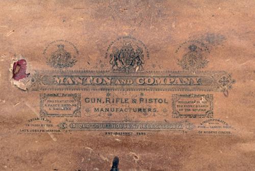 30in. nitro reproved barrels, rib engraved 'MANTON & CO. GUN MAKERS LONDON & CALCUTTA', 2 1/2in. chambers, bored approx. imp. cyl. and full choke, right wall at 18, treble-grip action, automatic safety with gold-inlaid 'SAFE' detail, gold-inlaid cocking-indicators, bold acanthus scroll engraving, retaining traces of original colour-hardening, 14 1/2in. figured stock (crack at right overhorn), weight 6lb. 14oz., in its pigskin leather case