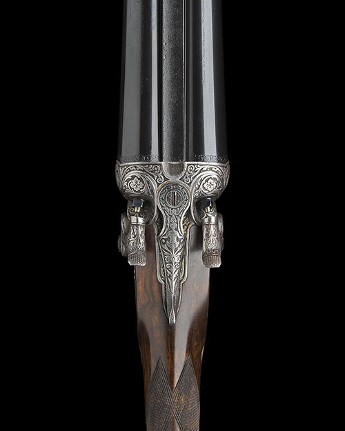 Donald Dallas has kindly informed us that on the basis of his extensive research through the Purdey records whilst writing his definitive history of the makers, that the very unusual specifications of this pair of guns does establish them as unique.